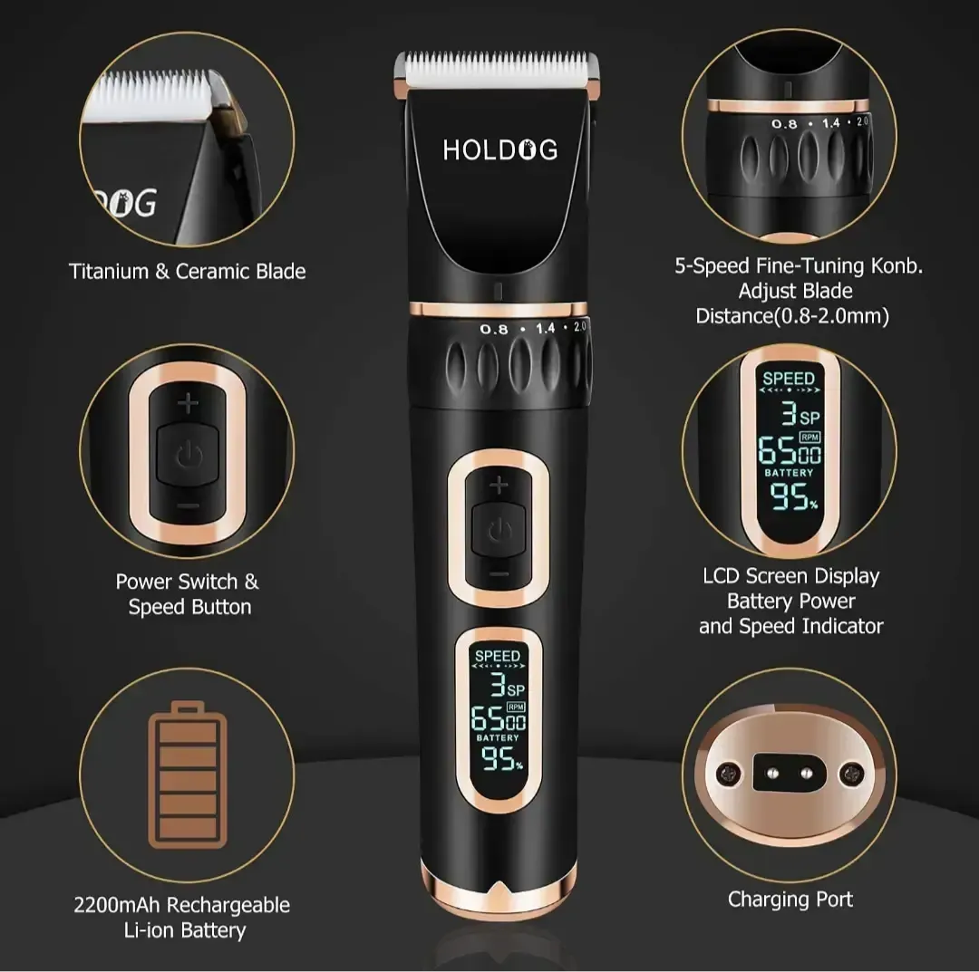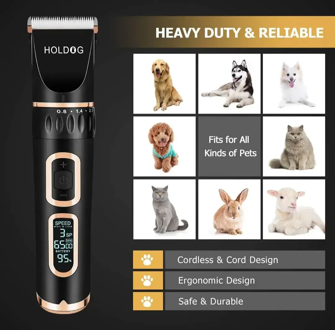 Cortapelos para perros Profesional Heavy Duty Dog Grooming Clipper 3 velocidades Bajo ruido Alta potencia Recargable Inalámbrico Herramientas de aseo para mascotas para perros pequeños y grandes Gatos Mascotas con abrigos gruesos y pesados